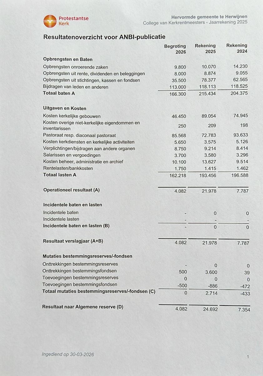 ANBI Gemeente Hervormd Herwijnen
